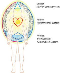 Der dreigliedrige Mensch und die drei Bereiche im Jahreslauf-Ei (die Symbole sind meine Ideen)