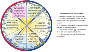 Da jedes Mantra, in dem das Wort “Geistestiefen” enthalten ist, in einem anderen Sechstel des Seelenkalender-Jahres vorkommt, habe ich die sechs Dinge, die Adam genommen wurden und die folglich neu durch die Christuskraft zu erringen sind, versuchsweise diesen Sechsteln zugeordnet.