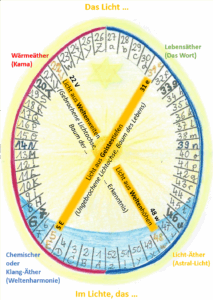 Das Licht aus Weltenweiten (22 V) ist Welt-Licht und durch die Weiten des Umkreises scheint es mir auf die zyklische Zeit zu deuten. Das Licht aus Geistestiefen (31 e) ist ein im Menschen aufsteigendes Geist-Licht, das ich mit der linearen Zeit und der Gegenwärtigkeit verbunden denke.