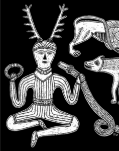 Zeichnung des sogenannten Schamanen auf dem Silberkessel von Gundestrup
